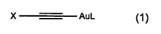 A substituted ethynyl gold-nitrogen containing heterocyclic carbene complex represented by the general formula (1): , wherein, … X represents an alkyl group, a cycloalkyl group, an aryl group, an aralkyl group or a heterocyclic group; in which one or more hydrogen atoms on the carbon atom(s) of X may be replaced by a halogen atom, an alkyl group, a cycloalkyl group, an alkenyl group, an aryl group, an aralkyl group, an alkoxy group, an aryloxy group, a dialkylamino group, an acyl group or an arylcarbonyl group; and, when more than one hydrogen atom on the carbon atom(s) of X is replaced by the alkyl group, the alkenyl group, the aryl group, the aralkyl group, the alkoxy group, the aryloxy group, the dialkylamino group, the acyl group or the arylcarbonyl group, the adjacent groups may be bonded together to form a ring.