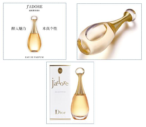 J’ADORE series perfumes of PARFUMS CHRISTIAN DIOR (hereinafter-called Dior Company) have certain fame and reputation with its perfume bottles having certain features: