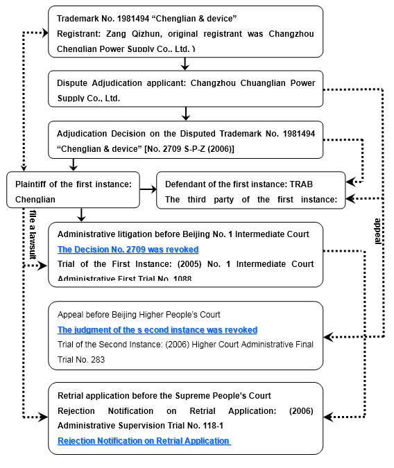 Administrative Litigation Lawsuit concerning the Adjudication Decision on the Disputed Trademark No.1981494 “Chenglian & device” [No. 2709 S-P-Z (2005)]