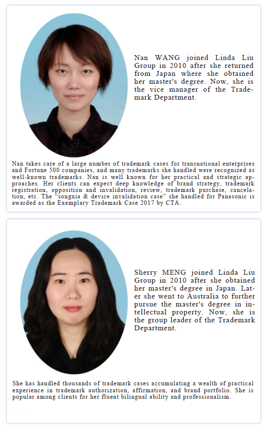 Moreover, two of our trademark attorneys Nan WANG (Ms.) and Sherry MENG (Ms.) entered the third batch individual list of “Gold Level Trademark Services”.