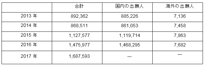 表1:過去5年間の中国実用新案の出願件数
