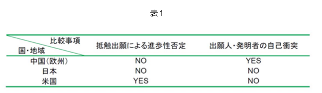 上記比較から、日本及び米国に比べて、中国及び欧州の抵触出願制度では、先願の出願人が「何人」であってもよく、つまり自己衝突が発生することが分かる。したがって、日本、米国の出願人は、中国、欧州に特許出願する際、自分自身の先願が後願に対して抵触出願とならないように留意すべきである。