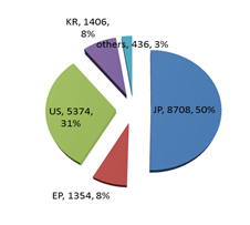 図2から、SIPOが受理した全てのPPH申請では、JPO、米国特許商標庁(USPTO)、欧州特許庁(EPO)、及び韓国特許庁(KIPO)の四庁を先行庁としたPPH申請が大多数を占め、特にJPOの審査結果に基づくPPH申請件数は8,708件に達し、PPH申請総件数の50%を占めていることが分かる。また、これまでに多くのPPH申請を処理した弊所の経験によれば、JPOの審査結果によるPPH申請は、殆どが日本の出願人による出願であるが、USPTOの審査結果によるPPH申請では、米国の出願人による出願だけでなく、日本の出願人、又は他の外国出願人による出願であるケースもある。したがって、日本の出願人が提出したPPH申請の件数が実際には総件数の50%以上を占めている可能性が高い。