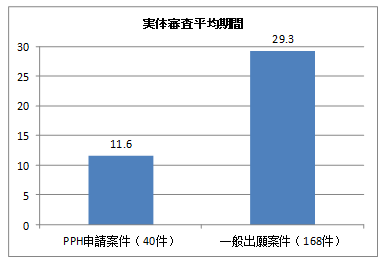 また、個別案件の審査期間に違いがあっても、PPH申請で審査期間が最も長期間に及んだ案件(27.3ヶ月)で、一般出願案件の平均審査期間の29.3ヶ月より2ヶ月短いので、PPH申請は出願案件の早期審査に顕著な効果を有しているということが分かる。