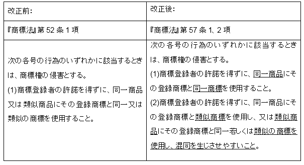 なお、商標権侵害に対する認定も、商標法(2013年)改正によって、大きく変化した。
