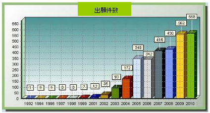 中国におけるMIMOに係る特許出願は1992年から始まった。1992年から現在までの発展について、2段階に分けられる。第1段階は、1992年~2002年頃までの形成期を指す。この間の出願件数は少なく、いずれも一桁しかなかった。第2段階は、2002年から現在までの急速発展期を指す。この段階の出願件数は急速に増加し、毎年非常に高い増加率を示しており、2002年の35件から、2010年の568件まで増加した。出願件数は、わずか8年間で20倍近く増加した。また、MIMOは将来多くの移動体通信のキー技術の一つに過ぎないが、年間500件を超える出願件数があることから、現在、この技術に関する研究の熱さが伝わってくる。