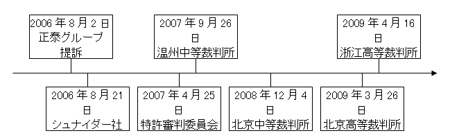 正泰グループが自社の97248479.5号実用新案特許権(以下本件特許という)を侵害したとして、シュナイダー社を提訴した事件の第二審において、正泰グループとシュナイダー社は、2009年4月に和解した。これで、第一審判決で3.3億元(48億日本円)というこれまでの中国における特許権侵害紛争の中で最も高額の損害賠償が命じられた事件は、3年にわたり幕を閉じた。