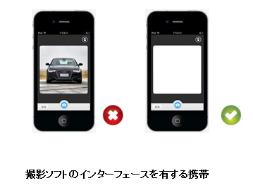 ⑥使用時に「内容画面」をもつGUIは、GUI以外の「撮影内容」「放映内容」「プッシュ内容」等の図面を含んではいけない。