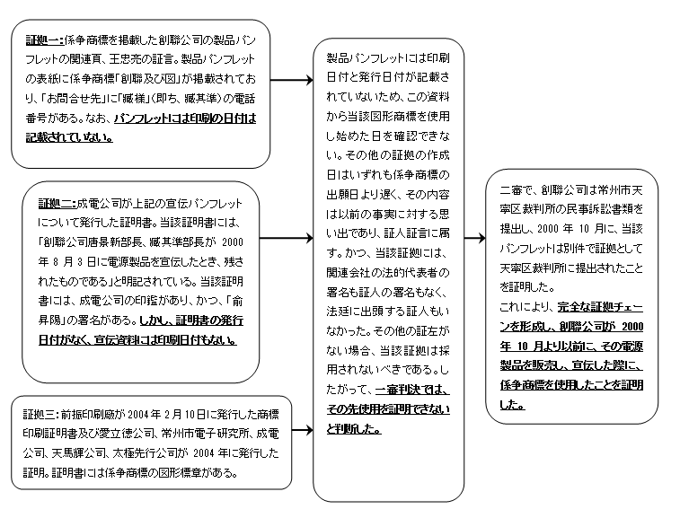 1、先に使用した事実を証明できる完全な証拠チェーンを形成したことが、本件において創聯公司が最終的に勝訴したキーポイントである。