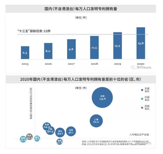 2020年末までに、権利化且つ有効と維持されている発明特許の保有件数は305.8万件で、前年同期比で14.5%増えた。うち、国内出願人による発明特許の保有件数は前年比18.3%増の227.9万件であり、全体の74.5%を占めており、海外出願人による発明特許の保有件数は、前年比4.6%増の77.9万件に達し、全体の25.5%を占めた。2020年末までの中国国内(香港、マカオ、台湾を除く)の1万人当たりの発明特許保有件数は15.8件に達した。
