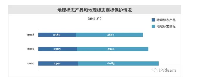 2020年、CNIPAが受理した地理的表示商品の登録申請は10件で、承認された地理的表示商品の登録件数は6件で、地理的表示商品の専用マークの使用を許可された企業は1052社(うち、CNIPAに届出済の省級知的財産権管理部門に許可された地理的表示専用マークの企業531社を含む)あり、2020年末までに、承認された地理的表示商品の登録件数は累計で2391件で、専用マークの使用を許可された企業は累計で9333社であった。