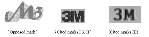 The cited mark III “3M” (Reg. No.727253) was filed for registration on July 7, 1993 and it was renewed with the validity up to January 27, 2015. The designated goods are “Infrared ray safety light (for instrument)”, etc. The subclasses of the goods are 0901, 0903~0904, 0907~0908, 0910, 0913, 0916, 0919, 0921, and 0924. The three trademarks were all filed by MINNESOTA MINING AND MANUFACTURING COMPANY and assigned to 3M Company.